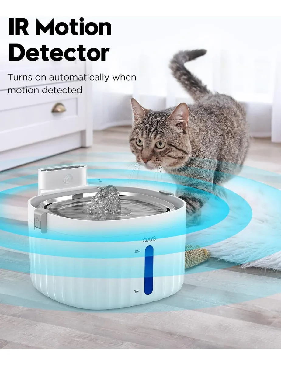 El sensor IR infrarrojo detecta cuando la mascota se acerca a la fuente, para activar el agua en movimiento y se apaga cuando la mascota se aleja.
