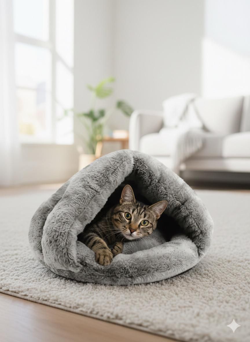 Cama de peluche super comoda apta para gato o perro de raza pequeña/mediana. Tiene un espacio estilo cueva para que tu peludo duerma mejor. SOLO EN COLOR GRIS